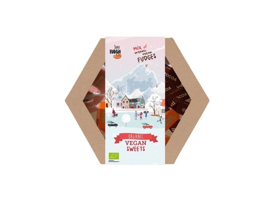 Vánoční dárková krabička naplněná veganskými karamelkami, Super Fudgio, 195 g