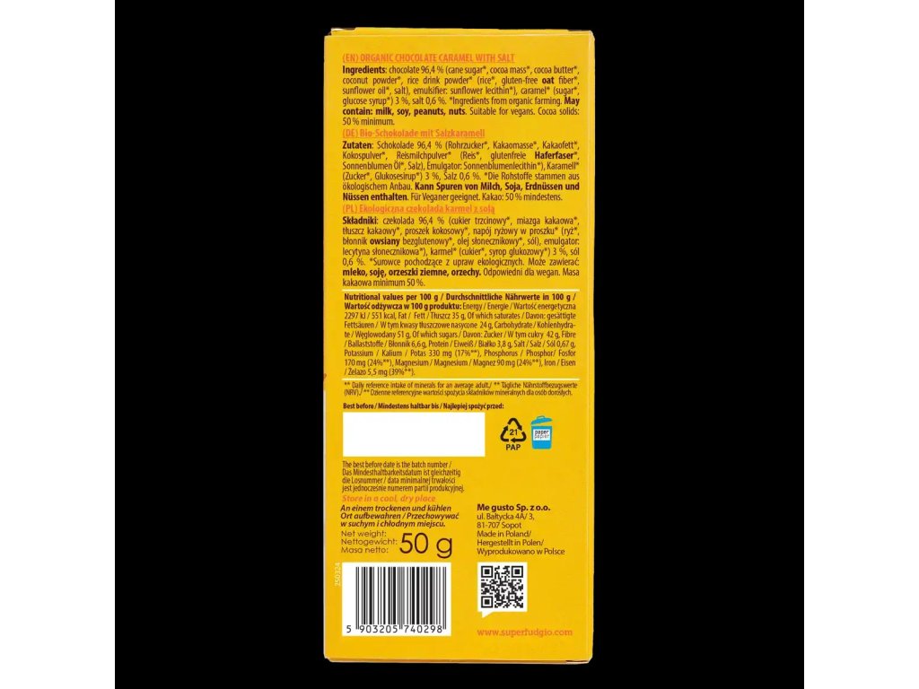 Hledáte dokonalý čokoládový zážitek? Naše veganská karamelová čokoláda se solí vás naprosto nadchne. Představte si jemnou, veganskou čokoládu s krémovým karamelem a špetkou soli, která rozehraje na vašem jazyku symfonii chutí. Každá tabulka je vyrobena z bio surovin, bez GMO a palmového oleje, takže si můžete vychutnat skvělou chuť bez kompromisů.