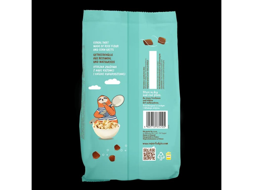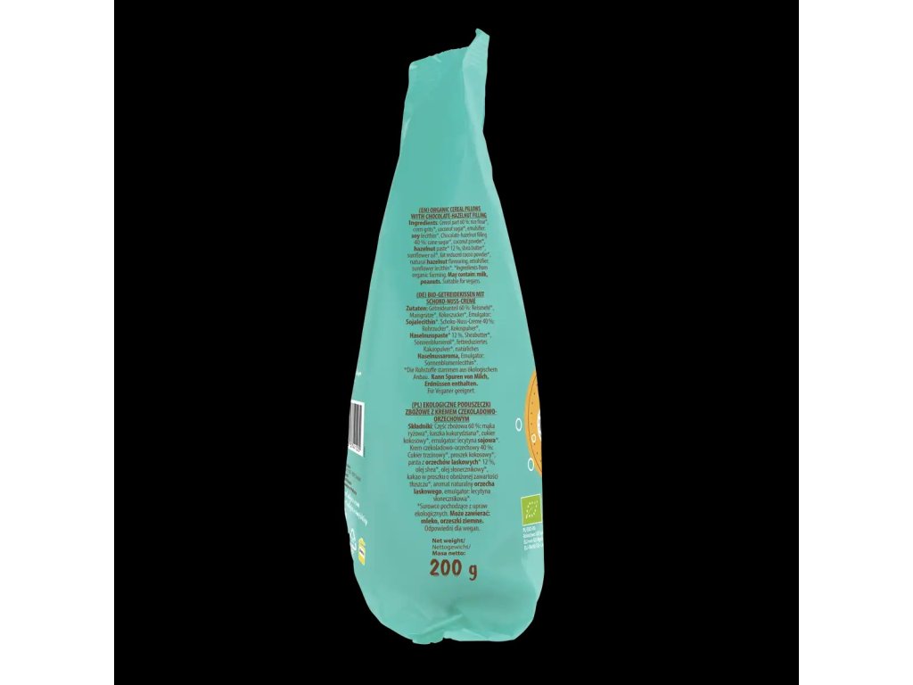 - Složení - Obilná část 60 %: rýžová mouka*, kukuřičná kaše*,kokosový cukr*, emulgátor: slunečnicový lecitin*, čokoládovo-oříšková náplň 40%: třtinový cukr*, kokosový prášek*, pasta z lískových oříšků* (12 %), slunečnicový olej*,kakaové máslo*, kakaový prášek se sníženým obsahem tuku*, emulgátor: slunečnicový lecitin*, přírodní aroma.